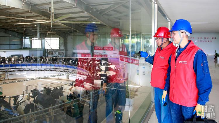 △寧夏銀川,電力員工深入奶牛養(yǎng)殖企業(yè),助力數(shù)智化養(yǎng)殖。(圖/視覺(jué)中國(guó))
