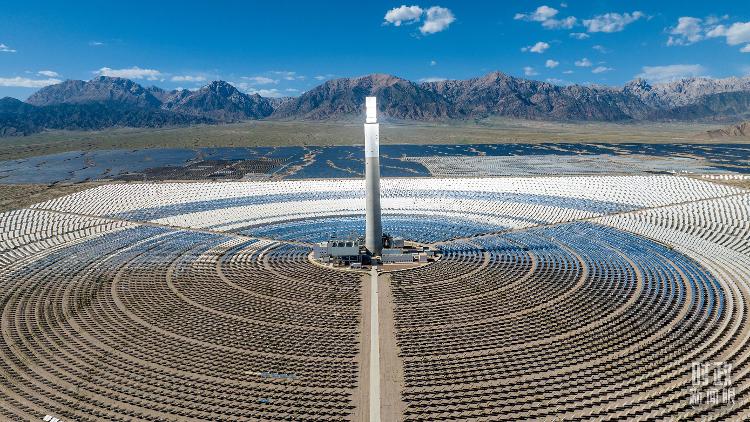 △青海海西德令哈塔式熔鹽儲(chǔ)能光熱發(fā)電廠。(圖/視覺(jué)中國(guó))