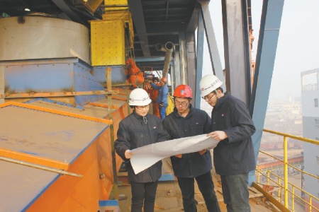 石瓊帶領技術人員,反復鉆研圖紙,精心勘察現場,制定施工方案,僅用3個月時間就將港內鋼結構主體安裝完成,設備安裝和附屬設施也同時安裝,光轉接平臺就高達40多米。