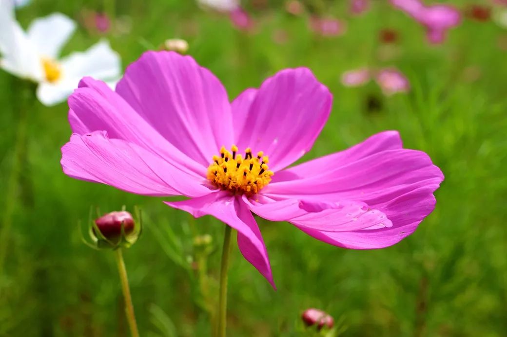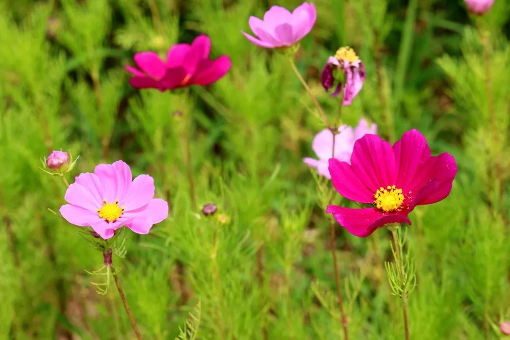 波斯菊,又名:秋英,花語是“少女的純情”。原產美洲墨西哥。平日路邊零散倒不覺稀奇,如今綿延一片,自成花海,美得讓人如癡如醉。