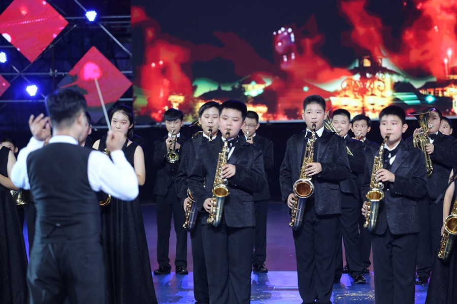 主流日照訊 8月9日晚上的日照,海風習習,群星璀璨,“山外有約·中國音樂小金鐘”第七屆全國中小學生管樂獨奏展演正式開幕。來自奧地利、馬來西亞、捷克、斯洛文尼亞等多個世界著名管樂團和全國各地1400余名中小學生齊聚日照,上演了一場精彩紛呈的音樂盛宴。