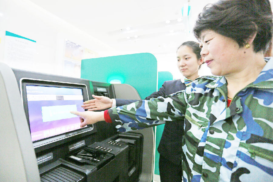 3月3日,北京路農業銀行營業部,銀行工作人員在指導市民兌換硬幣。 據了解,我市作為全省五大試點城市之一,于今年1月1日起啟動實施“1元券硬幣化工程”。 目前共在農行、建行等五處添置了紙硬幣自動兌換機,方便市民進行兌換。 (記者 潘一凱 攝)