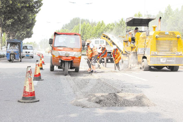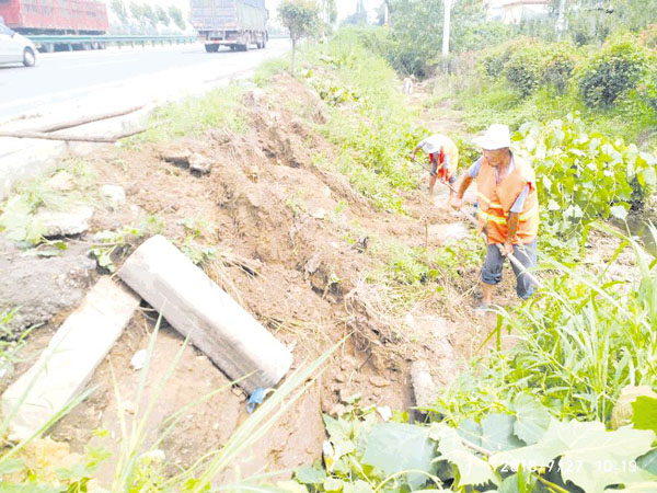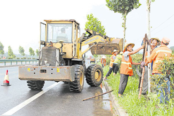 ① 對(duì)222省道兩側(cè)行道樹(shù)扶正培植② 對(duì)204國(guó)道丹陽(yáng)路路段坑槽進(jìn)行修補(bǔ)③ 修復(fù)613省道水毀路段(本報(bào)通訊員 張守軍 文楊偉超 攝)