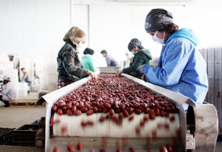 在廠房中,快速運轉的機器不斷發出轟鳴聲。原棗經過篩選、分級、洗凈、烘烤、包裝等一系列工序之后,成為了健康有機、綠色環保的高質量產品。