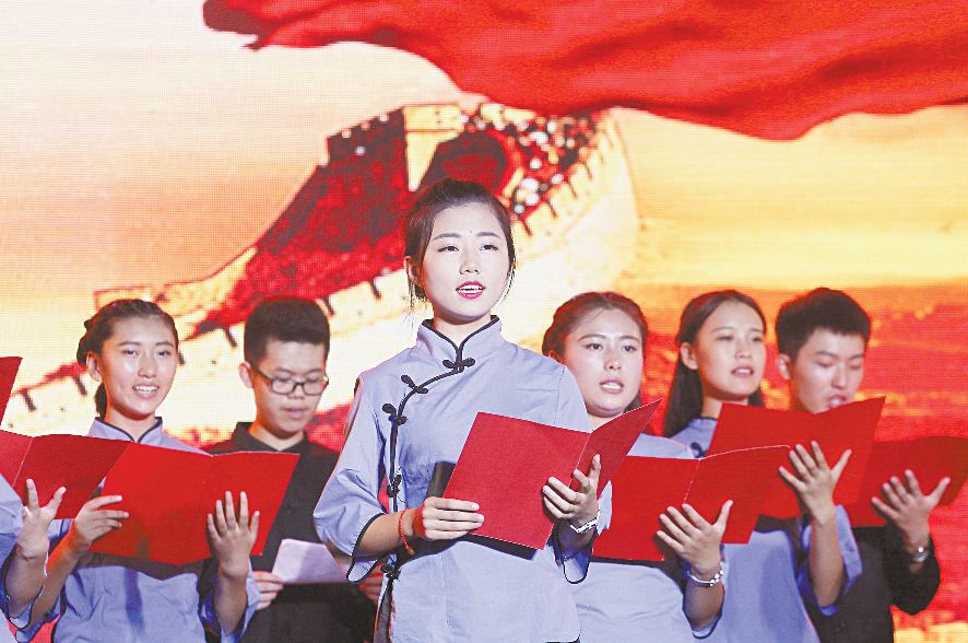 9月1日,在市人民廣場,演員正在朗誦《永恒的記憶》。 當日,第十六屆“港城之夏”文藝展演閉幕式在市人民廣場舉辦。今年的港城之夏文藝展演走進各區縣,讓更多的老百姓感受到了文藝帶來的快樂。(記者 趙怡凱 攝)