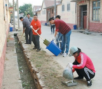 近日,日照市質(zhì)量技術監(jiān)督局組織干部職工到包聯(lián)村孔家湖子開展第二次義務勞動。 志愿者分成5個小組,攜帶鐵锨、掃帚、鐮刀等工具,清掃村內(nèi)道路。同時,利用草皮機、綠籬機、割灌機和疏草機等對村中綠化帶進行了全面修剪。經(jīng)過志愿者們的努力,村容村貌煥然一新。(記者 殷萁涵 攝)