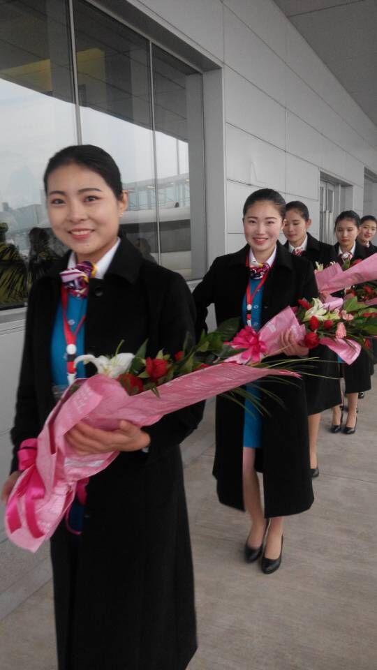 日照機場禮儀小姐準備就緒
