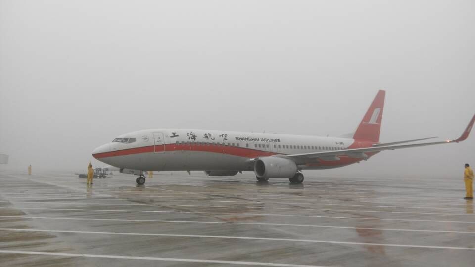 12月22日11時25分,由上海浦東機場飛往日照山字河機場的fm9125航班降落日照機場 日照日報社全媒體報道 記者:史樹梅 張磊