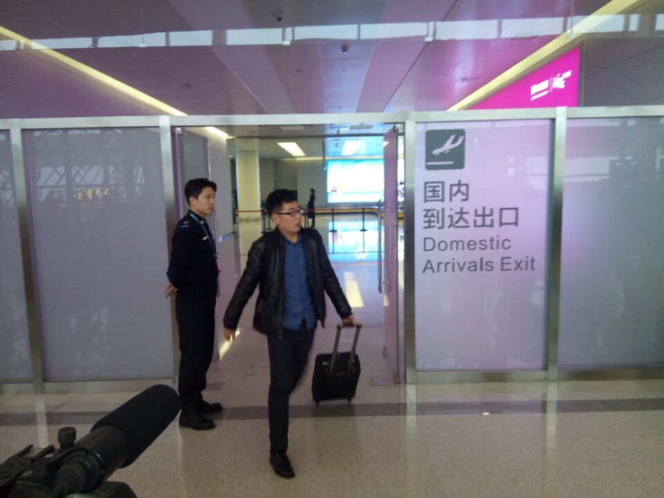 第一位乘客出來了(日照日報社全媒體報道 記者 王帥)