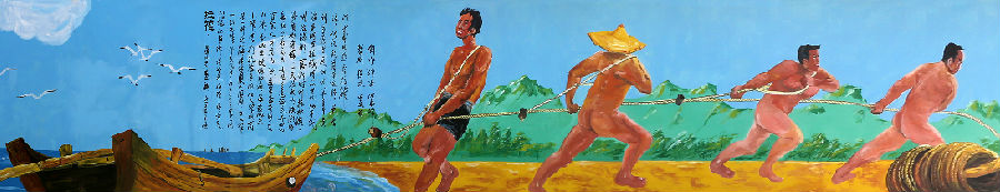 “羞山不羞?!?,這是日照沿海的老話,說的是拉筰時漁民都一絲不掛。那年代窮,布金貴。筰網是一種近海捕魚用的圍網,分大筰、小筰,清乾隆年間的大筰網高11米、長136米,綆繩30盤,每盤102米,百余人才拉得動。拉筰需筰網一套、舢板兩只,場地多是海底平坦的沙質地海域,一天拉兩次,漲潮時叫拉滿潮,落潮時叫拉枯潮。魚貨多時還可拉截網。20世紀50年代,劉家灣曾一網拉過8000多斤黃魚。傳說乾隆南巡時曾專門來日照看拉筰。