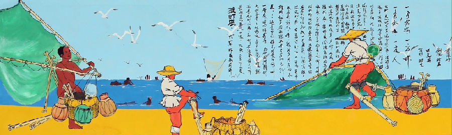 至清代,演出時就穿上畫有海洋生物圖案的服裝,臉上畫著海洋生物形象的臉譜,用鑼鼓伴奏,成了有聲有色的舞蹈。再后來,就用竹子和布料扎制魚、鱉、蝦、蟹、蚌等海洋生物模型,表演時或頂在頭上或背在背上,海洋生物動作被栩栩如生、活靈活現地展現出來。例如:魚的嘴巴張合自如,尾巴能夠隨意搖擺,蟹的爪子能伸能縮還能抓物等。
