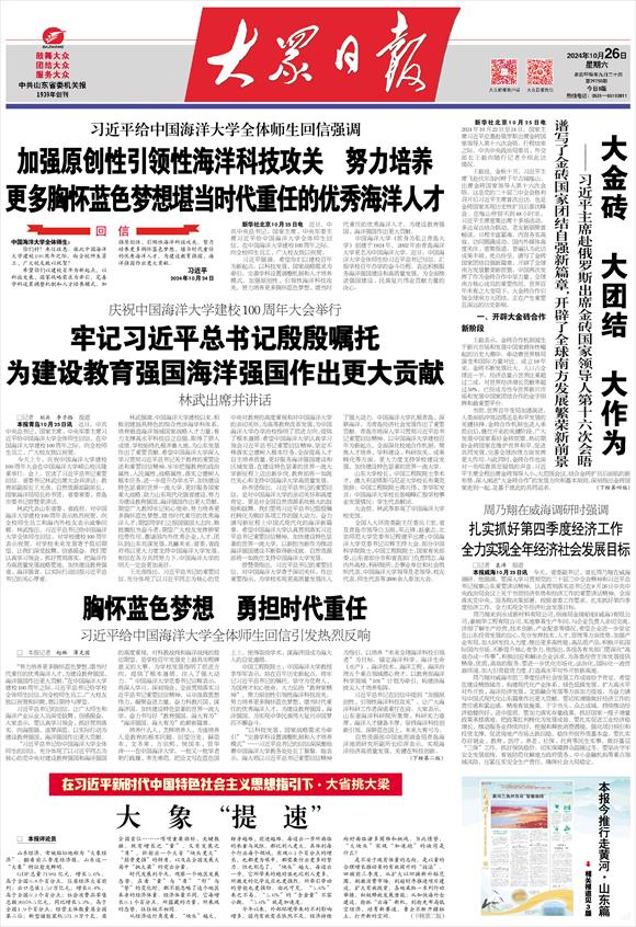 “習(xí)近平總書記給中國海洋大學(xué)全體師生的回信,充分體現(xiàn)了以習(xí)近平同志為核心的黨中央對建設(shè)教育強(qiáng)國和海洋強(qiáng)國的高度重視,對科教戰(zhàn)線和海洋戰(zhàn)線的殷切期望,是學(xué)校百年發(fā)展史上最具里程碑意義的大事,為學(xué)校發(fā)展指明了前進(jìn)方向,提供了根本遵循,注入了強(qiáng)大動力。”中國海洋大學(xué)黨委書記田輝表示,將深入學(xué)習(xí)、深刻領(lǐng)會、全面貫徹落實(shí)習(xí)近平總書記重要回信精神,從中汲取思想偉力、凝聚奮進(jìn)力量,奮力科教興國、謀海濟(jì)國,加快建設(shè)特色顯著的世界一流大學(xué),奮力書寫好“教育強(qiáng)國,海大有為”“海洋強(qiáng)國,海大有為”的嶄新篇章。