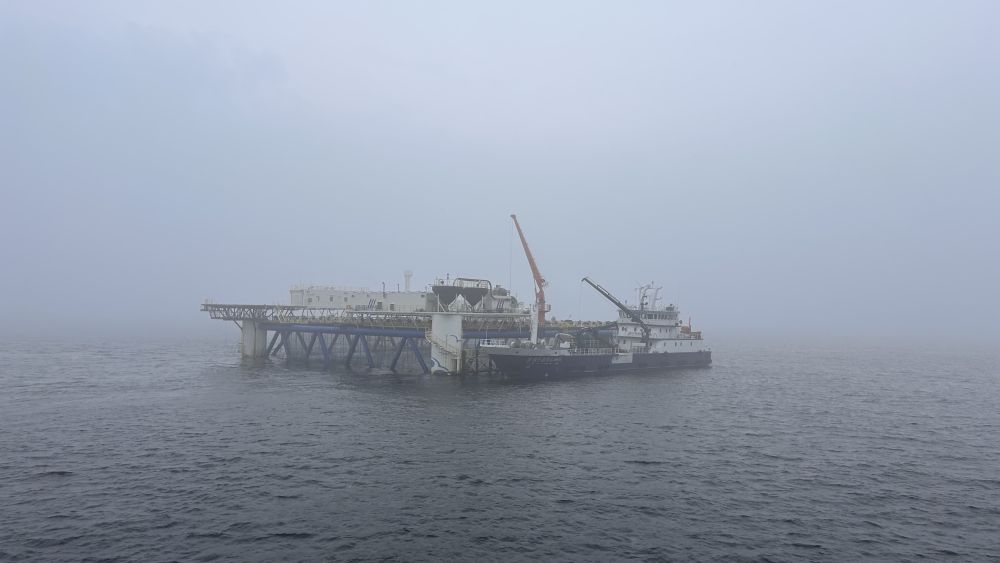 這是雨中的“經海002號”深遠海智能網箱。新華社記者 李志浩 攝