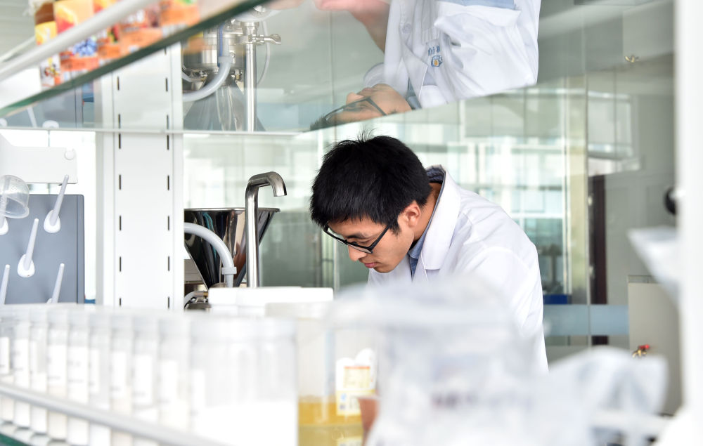 ?一名工作人員在青島明月海藻集團的實驗室內工作。新華社記者 徐速繪 攝